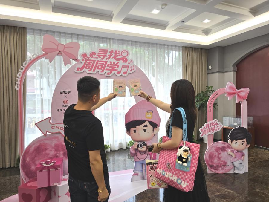 这些原本充满功能性的日常空间,在活动期间都成了文化传播的小节点。市民或许在办理银行业务、赶地铁通勤时,就会偶然邂逅 “粉色月亮”,自然而然地融入节庆氛围。这种跨界合作,不仅让 “周同学” IP 的应用场景更广阔,也为城市公共服务空间开辟了文化传播的新可能。
