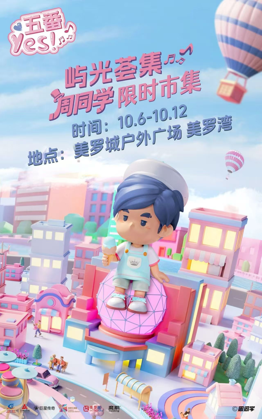 除了寻月互动,还有一场惊喜在等待 ——10月6日至10月12日,久事文传自有 IP “屿光荟集” 将携手周同学,在美罗城户外广场美罗湾打造限时市集。20余个人气品牌集结于此,既有限定美食,也有潮玩互动、音乐挑战,妥妥的 Jay 迷狂欢盛宴。